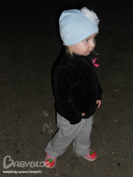 вчера было +35 на солнце,днем,вышли под вечер когда было уже более менее не жарко.вот моя озорница уже совсем большая стала)))уже болтает без умолку.всё всё говорит.И кстати мы уже неделю как без памперсов на улицу ходим)))УРААААА!Главное же понимает когда объясняю например в автобусе что нужно терпеть и терпит!просится мам!писсс чу!(писить хочу).
