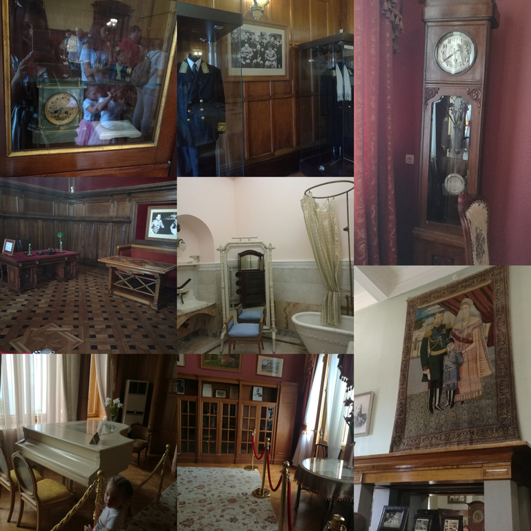 На следующий день мы поехали в Ливадийский дворец. Для многодетных при предьявлении удостоверения бесплатно. Мы заплатили только за экскурсовода по 70р с взрослого. Для мужа было важно туда сходить его дед был на этой конференции в охране. На территории есть часовня. На первом этаже экспозиция посвященная конференции ,на втором Романовым.