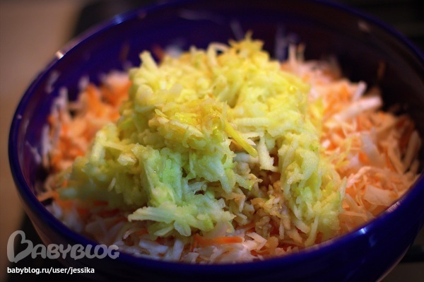 Ну, что ж, пришлось что-то из неё делать. Думала-думала, смотрела на капусту, которая осталась после борща и на яблоки, которые никто не ест и решила сделать вот такой салатик.