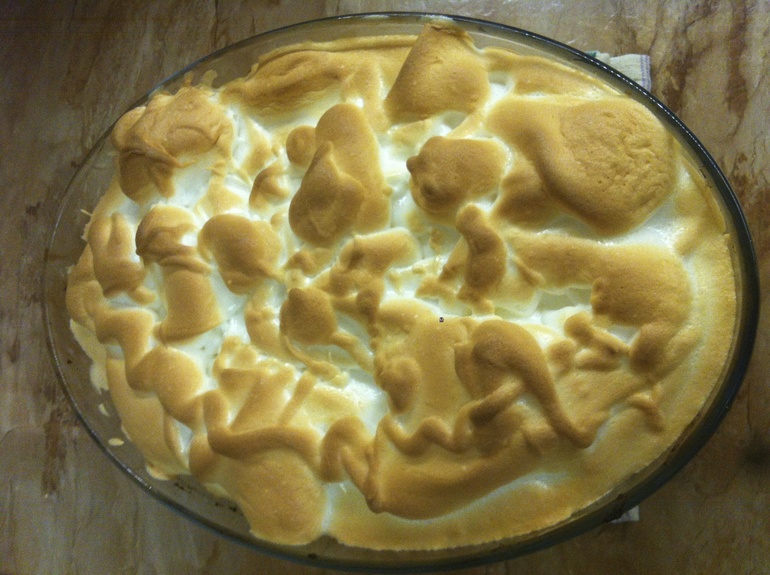 Тесто выкладываем в форму, сверху на него кладём творожную начинку. Ставим в разогретую духовку и выпекаем 20-30 мин. при 180 гр. Затем достаём пирог и смазываем приготовленным суфле, опять ставим в духовку на 10-15 мин. до готовности белков.