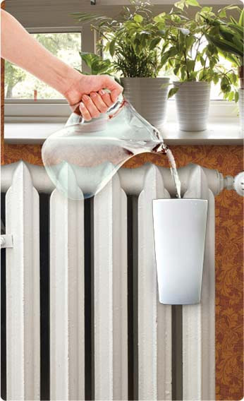 Вода от радиатора отопления будет нагреваться и выделять пар, тем самым увлажняя воздух.