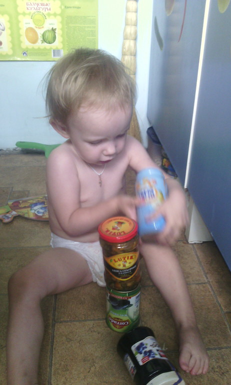 Пока готовлю обед,на полу растёт башня. Аня приговаривает: " таак,ряс,ряяяс, от")))) ничуть не расстраиваясь,если все падает,невозмутимо продолжает своё дело)