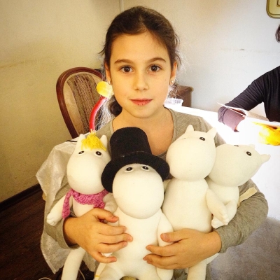 Посетили спектакль, теперь на второй собираемся, как раз приуроченный к зиме -"Муми-тролли и первый снег". Он от проекта, который я бы назвала "театр на столе". Очень уютная и добрая постановка, подходит по атмосфере книге. Что приятно, после спектакля мастер-класс, где мы сотворяли чудище из сказки.