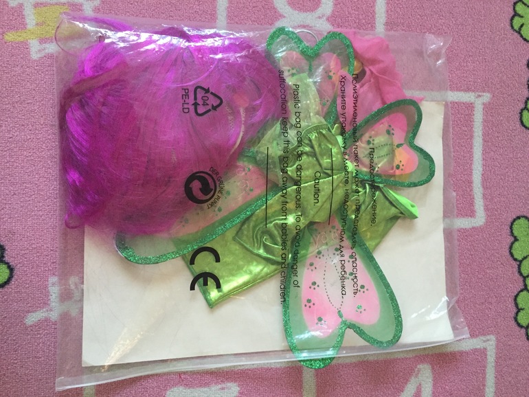 В комплекте: парик, крылья, шорты, топ и рукав.