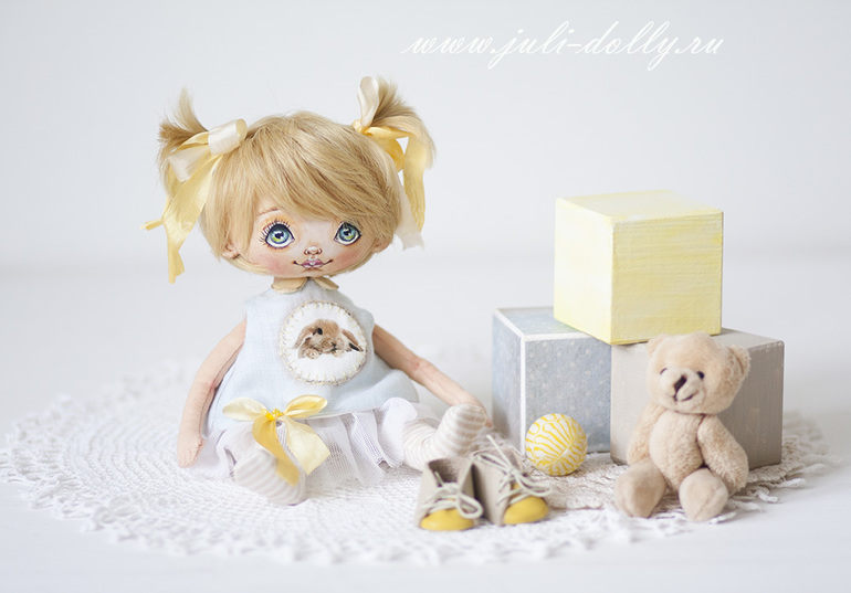 Кукла текстильная, ростом 18 см. Кукла-болтушка! Нет, она не очень любит разговаривать, просто ее особенность в том, что ножки у нее болтаются )