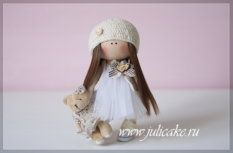 Кукла текстильная, ростом 19 см, с густой копной волос! Приедет к вам в подарочной упаковке. Вся одежда съемная! Штанишки, туника, ботиночки, бант, рюкзачок - все можно снять!