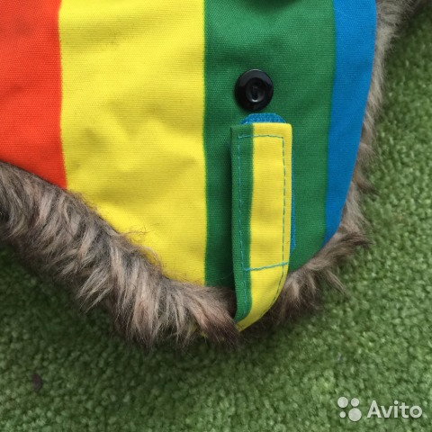 Отлично сберегает тепло, позволяя малышу совершать длительные прогулки по морозному воздуху. Изготовлена из водонепроницаемого материала снаружи и теплой подкладки внутри. Также шапка имеет вставки из искусственного меха. Ушки шапки можно поднять наверх и пристегнуть пуговками, а можно закрепить с помощью липучек под подбородком ребенка. Сзади шапка украшена нашивкой в виде звезды.