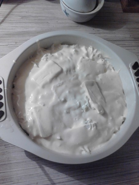 Переходим к тесту: смешиваем яйца,майонез,сметану,соль,добавляем разрыхлитель и перемешиваем.Постепенно добавляем муку,тесто должно быть по консистенции как густая сметана.