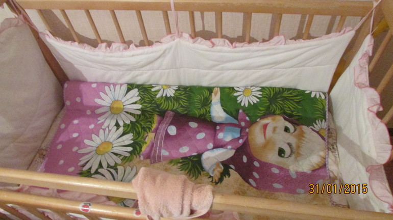 а это фото в кроватке)))были у них на новоселье))) пледик лежит в кроватке)))