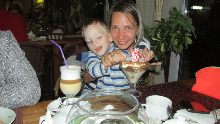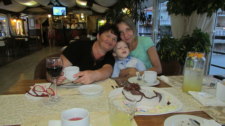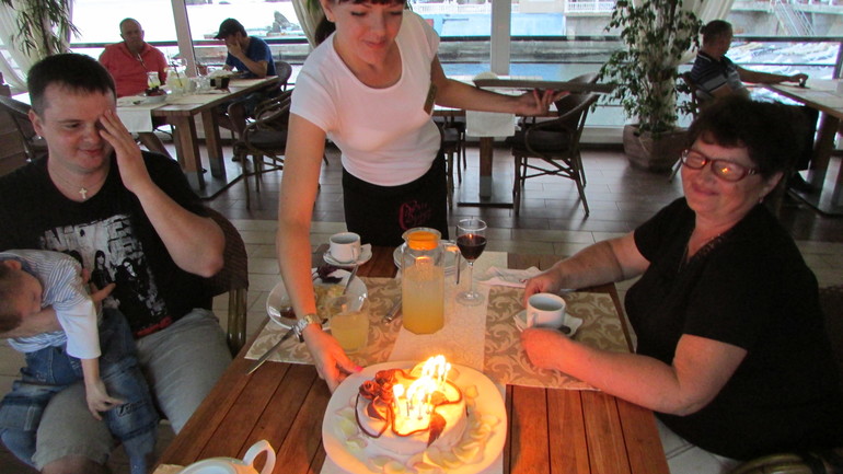 А это мы Сашеньке после поездки в Ялту вечером отметили День Рождения))Тоже юбилечик))в том же ресторанчике)))