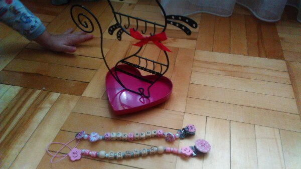 и это вот буквально на днях делала))именные держатели для пустышки))) понравилось мне их делать))) тоже знакомая попросила))сказала что ей очень хочется,но цены на них от 800 рублей...я была в шоке)))) от таких цен..тоже поискала в инете они и по 900 и по 1500 такие..ужас!!!! Девочке Сашеньке делала))