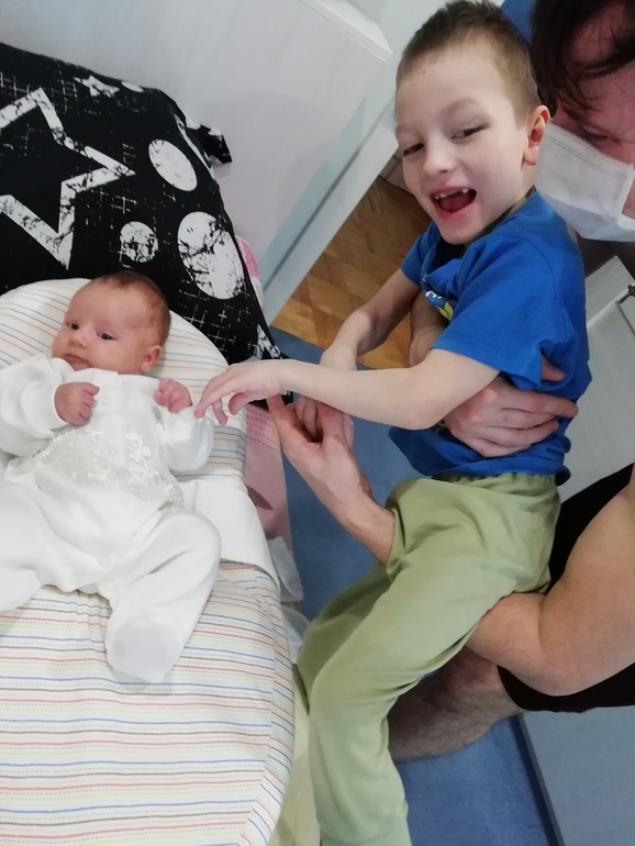 Сашенька встречает сестрёнку дома😍😍😍 очень обрадовался))) сразу заулыбался))