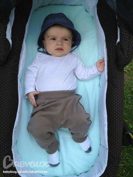 Всем интересуется, лежать совсем не любит, настойчиво просится на ручки, Маленький манипулятор :) как только оказывается на руках "жизнь становится прекрасной" :) Не любит сидеть на руках "лицом к себе", ерзает, хнычит, пока не перевернешь его "лицом к миру"! :) Катается в основном на мне, спина уже болит :( пока терпимо..