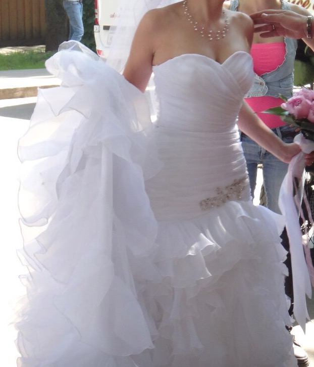 в химчистку не носила, почистить нужно только подол, совершенно минимально. В подарок удобный подъюбник с кольцами. И платье и подъюбник, одевались, соответственно, один раз. Во вложении реальные фото.