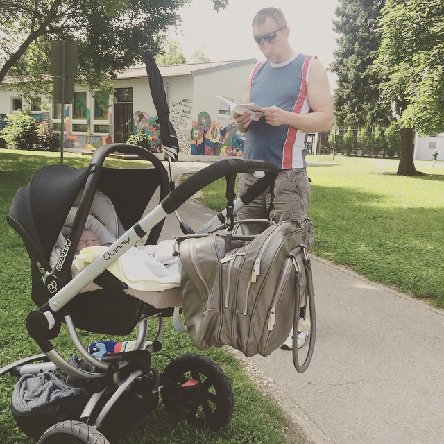 Мы наслаждаемся #летом Янник играет на #детской площадки , Лука сладко спит в своей @quinnywor