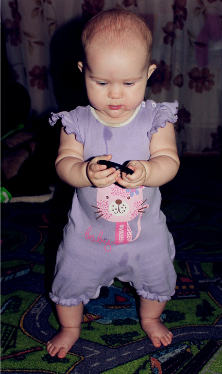 Из нового: с 7 мес. стоим без опоры, ходим держась. Все таки девочки шустрее мальчишек, правильно говорят.