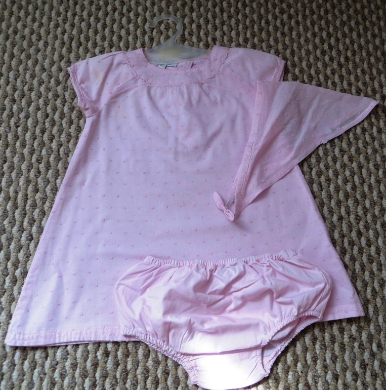 3.платье с косынкой и трусиками, есть ели заметное пятнышко на плече(см. фото) р.71 реально от 4-х месяцев-100 руб