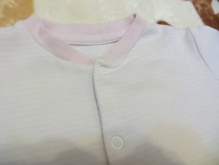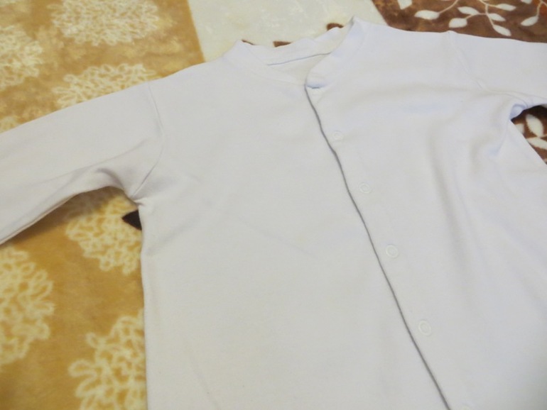 48. Комплект 0-3, все швы выполнены наружу,чтоб не травмировать кожу новорожденного ребенка -50руб. Есть маленькое пятнышко на распашонке,см. фото.