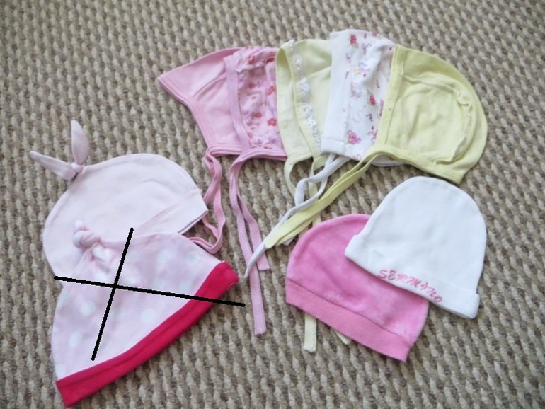 23. Чепчики - шапочки (все по размеру до 6-7 мес.) шапочек с ушками нет(слева) Любая 20 руб.