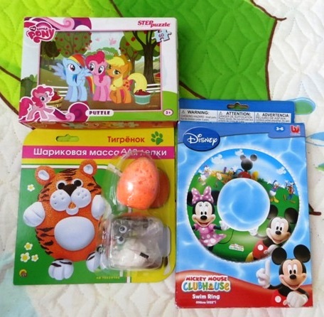 Подарочки девчонкам, пазлики и лепить мы любим, круг надеюсь пригодится в этом году (очень хотим на море,но пока под вопросом)