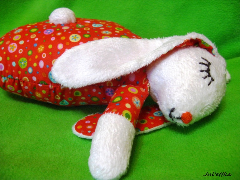 Вот такой славный зайчик сшился ооочень давно, а показываю только сейчас. Зайчик живет у хорошенькой девочки, служит оберегом и присылает малышу только сладкие сны!!!