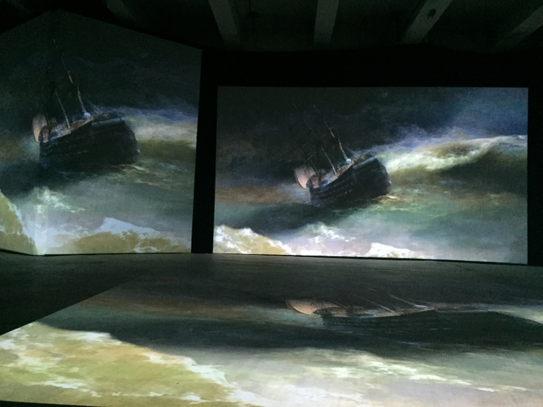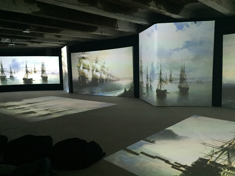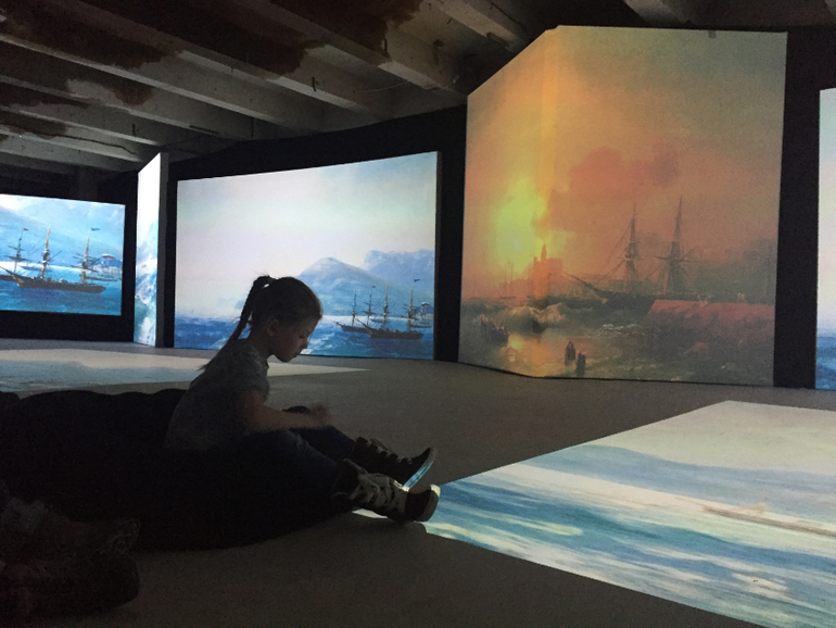 Из интересного. В воскресенье мы были на выставке "Айвазовский и маринисты" (многим уже известные ожившие полотна). Очень рекомендую всем! Потрясающие картины, в соседнем зале мастерская с мольбертами и красками, в самом зале стулья и кресла-подушки, можно и посмотреть, и полежать и поспать.