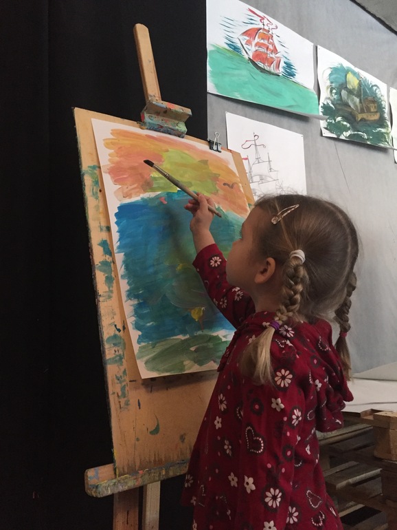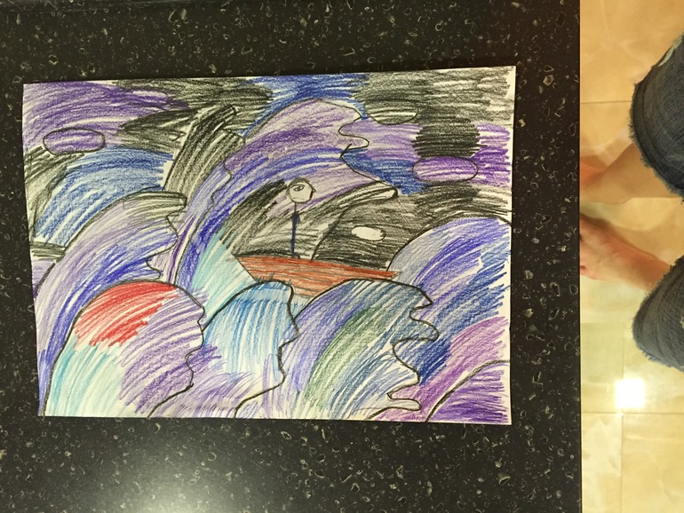 А это Даня вчера нарисовала, впечатлявшись выставкой. Все сама.