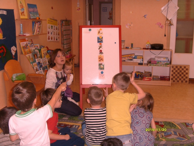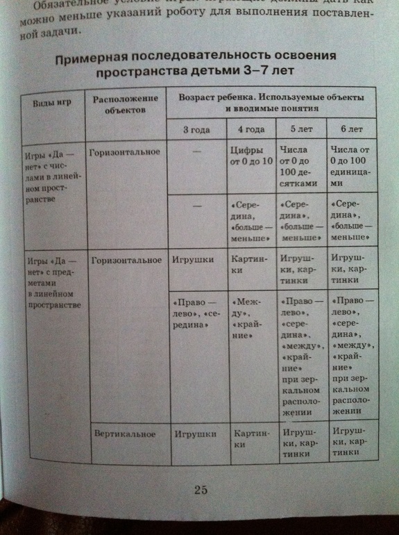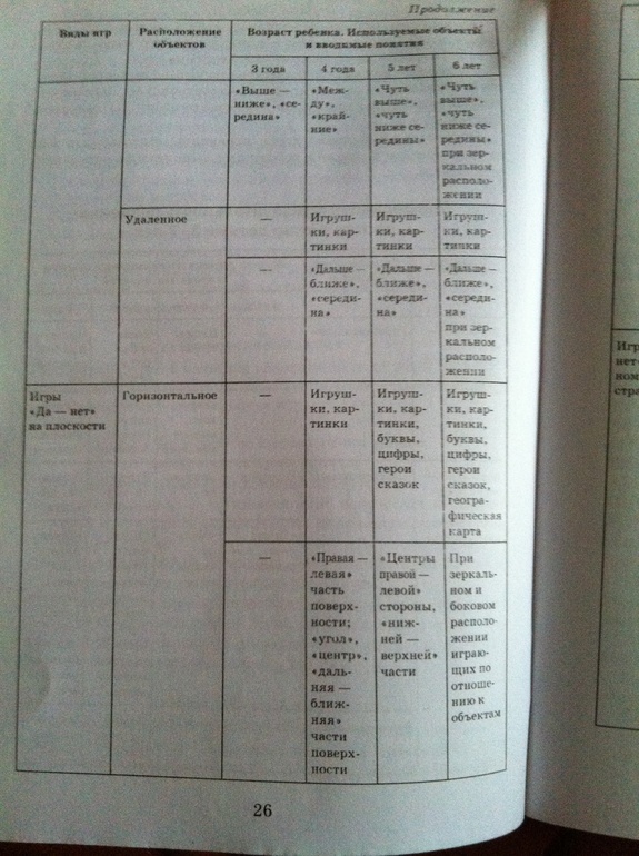 Нахождение предмета в линейном ряду. В ряд выложены картинки. Ведущий: "Я загадал одну из этих картинок. Вы задавайте мне вопросы о ее местоположении в ряду, а я буду отвечать только да или нет!" Дети задают вопросы уточняющие местоположение картинки в линейном ряду: в горизонтальном: это в центре?, это справа от того-то?, слева от того-то? Между тем-то и тем-то?; в вертикальном: по середине? Выше? Ниже? Над? Под? Первый угадавший получает эту картинку. Игра в линейном ряду повторяется несколько раз, затем переводится в двухмерное пространство. Теперь картинки расположены по всей площади стола (демонстрационной доски). Перед началом поиска в двухмерном пространстве ведущий уточняет терминологию: "верх", "низ", "центр", "правый нижний угол" и т.д. В ходе игры детей подводят к пониманию эффективного поиска, просят не перебирать предметы, а отсекать половину поискового пространства. Игра заканчивается, когда у группы детей на руках несколько картинок, имеющих отношение к лесу.