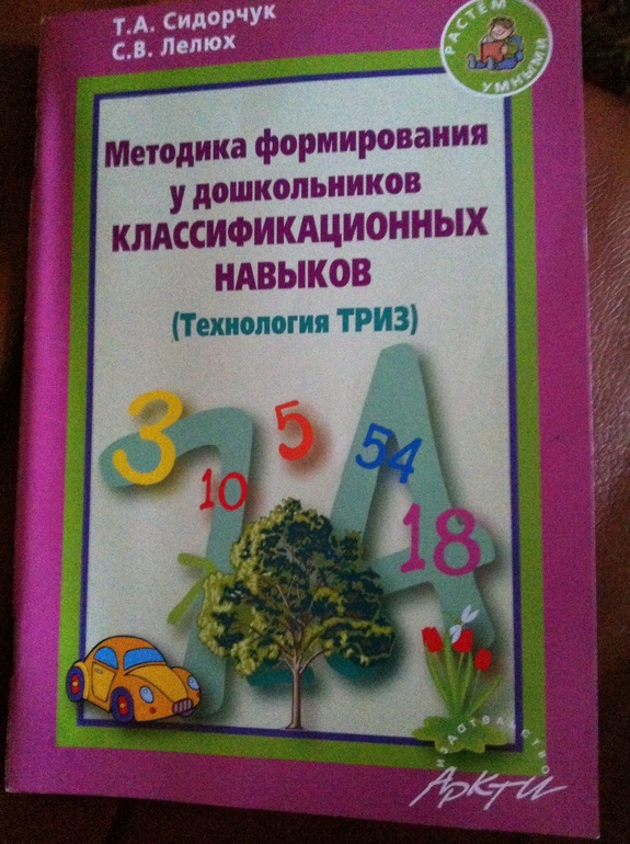 1. Сидорчук Т.А., Лелюх С.В. Методика формирования у дошкольников классификационных навыков. (Технология ТРИЗ) Аркти, Москва 2014.