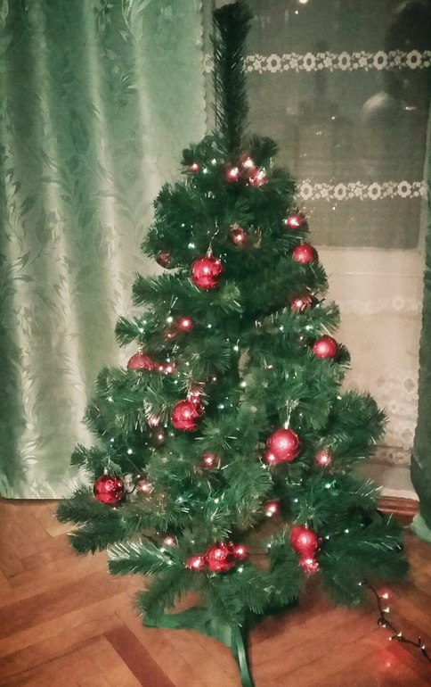 Муж вчера привез домой ёлку. Нарядили еще не до конца. Только шарики повесили и гирлянду. Еще надо докупить бусы и бантики.))) Честно говоря, у меня дома не было ёлки лет с 14-и, вот как я выросла и отказалась её наряжать.