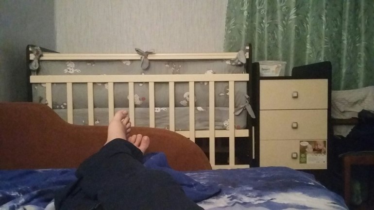 Думаю, веревочку привяжем к кроватке, чтоб качать не вставая с дивана. ))))))))![]()