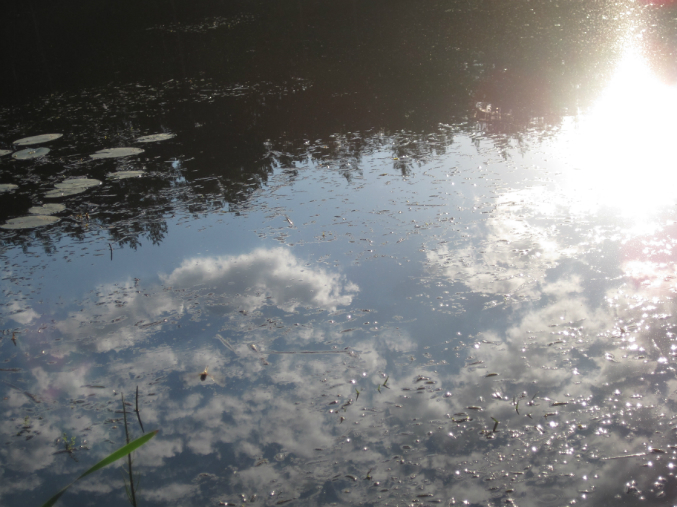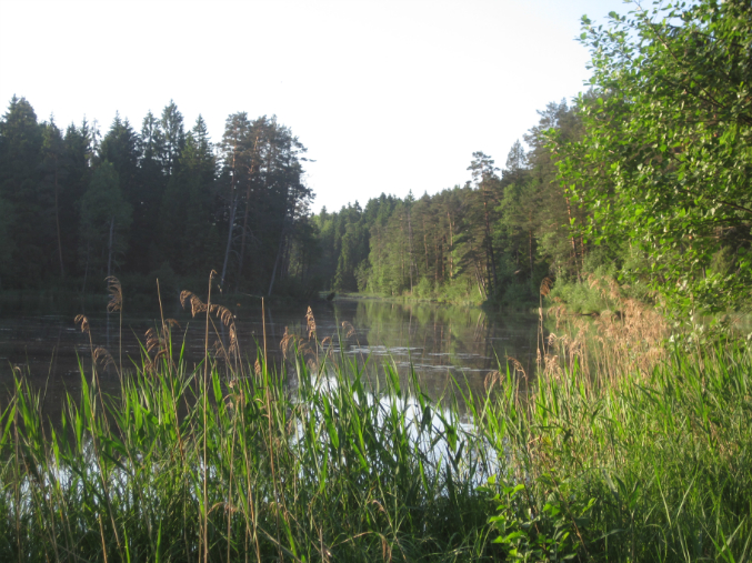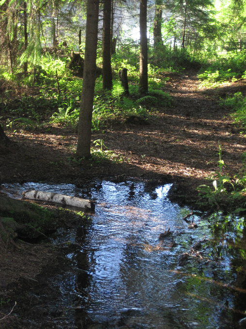 От источника вытекает ручей, который впадает в лесное озеро, по слухам - бездонное.