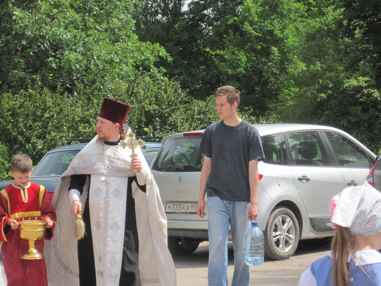 Батюшка кропит всех святой водой, все очень радуются - день выдался очень жаркий. Все! Целуем крест и по домам! Сколько впечатлений,фотографий на память. Удивительно, после трех с половиной часов суеты: езды, ходьбы, кормлений, смены памперсов и молитвы остается в душе тишина и молитвенный настрой.