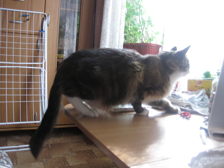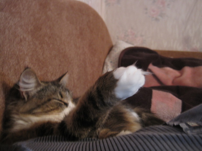 Кошачья страничкаЕсли бы мы были индейцами, то так назвали бы нашу кошку. Это самое любопытное создание на свете, которое везде сует свой нос и все трогает своей мягкой серой лапкой. Кошке же все интересно! Снимать бабочки-магнитики с холодильника и топить их в унитазе; открывать кухонный шкафчик и выкидывать на пол коробочки с детскими кашками, они же так интересно разлетаются по всей кухне; утаскивать ночью мою заколку-краб и прятать бабушке под одеяло. Носику и лапкам всегда найдется дело!