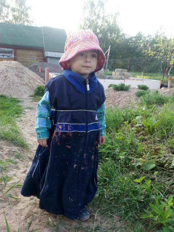 про двойняшекПоехали мы прогуляться на дачу с детьми. Вдруг подул сильный ветер, стало откровенно холодно. Я сняла жилетку с мужа и одела на сына.
