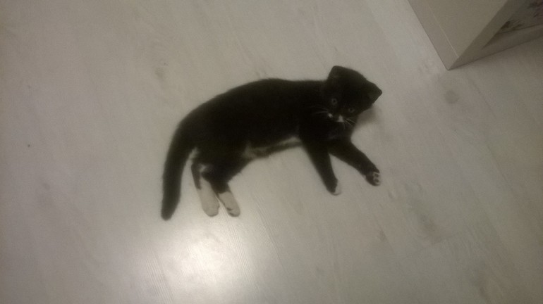Купила сухой корм, несколько игрушек, препараты. Серега припер нормальный лоток и две гигантские миски на прорезиненной основе ))). Последние 2 ночи спит нормально, всю ночь практически (а если не спит то не знаю чем занимается. но меня он не будит). Утром ждет сигнала будильника, сразу приходит здороваться.
