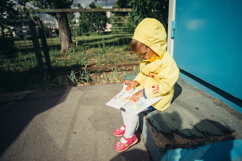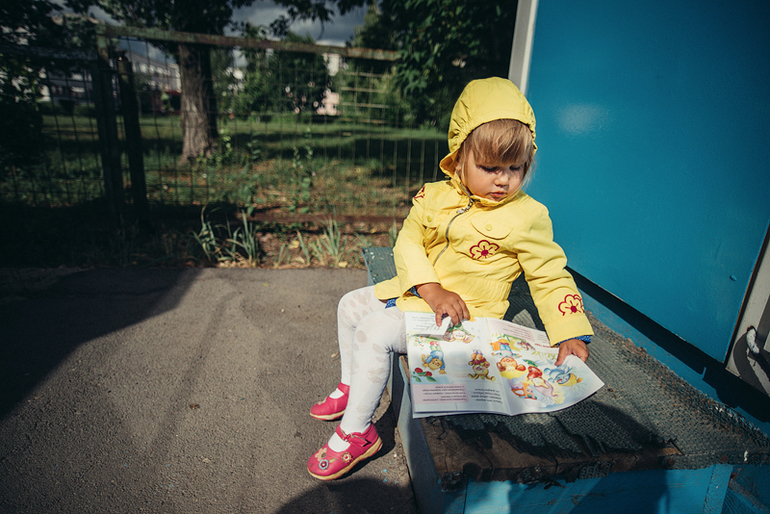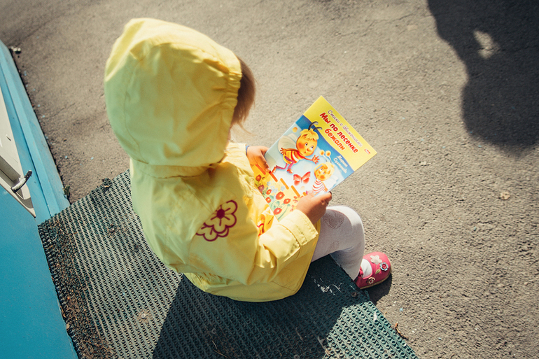 Забрали Настену из садика и вместе с бабушкой они купили книжку. Конечно же, Настя не удержалась и решила читать не отходя от "кассы" киоска. Получилась такая мини-история )