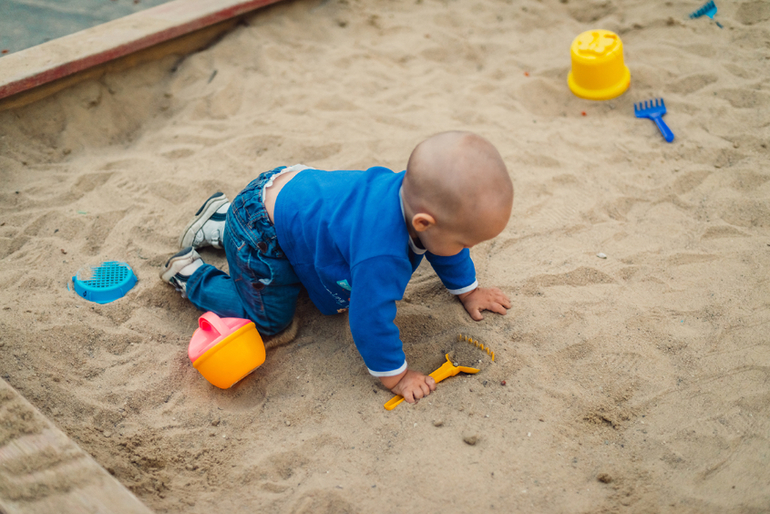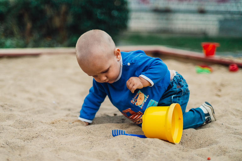 В песочнице тоже играем, но песок любит подбрасывать (а это нежелательно рядом с другими детьми) и пропускать сквозь пальцы.