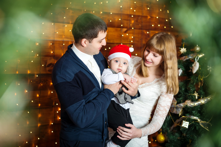 Украшения решили повесить в одном стиле в теплых тонах и вкусные дольки апельсинов разложить.