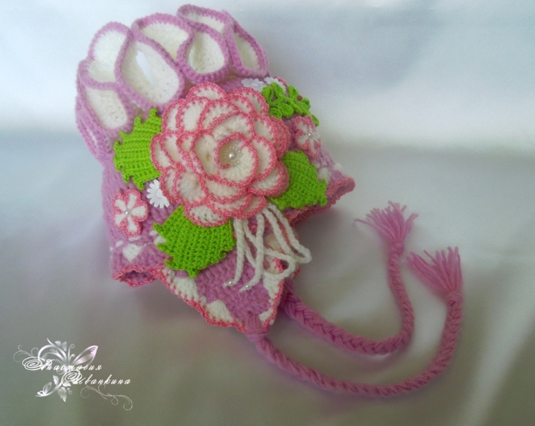 Спасибо большое!!! Помпон примерный мастер-класс тут http://akak.ru/recipes/16782-kak-svyazat-kryuchkom-azhurnyiy-sharik-pompon. Только для начала набрала 6 в. п., замкнула в кольцо, далее обвязала 12 ст. б/н., следующий ряд 1 ст. с/н., 1 в. п. и так до конца ряда.