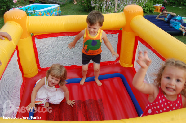 подарили батут, у детей возникла идея сделать дом