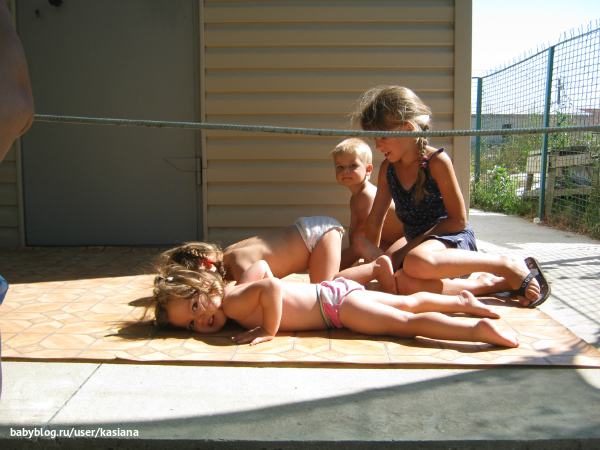 А это у нас отдыхала семья с двойней и старшей девочкой. Мелана показала дурной пример, а они все втроем решили поддержать ).