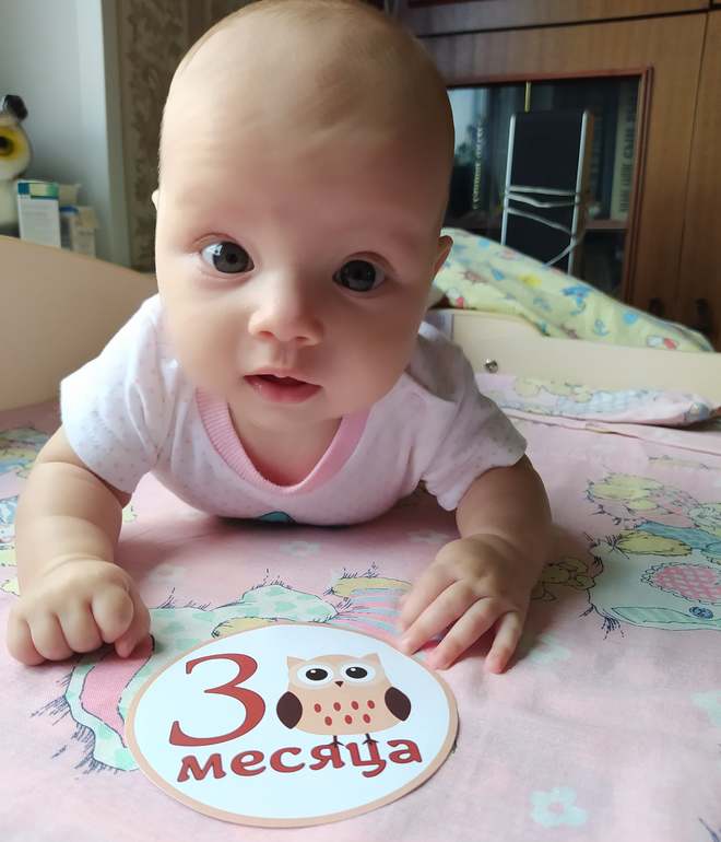 Ой, какая малышечка!)) Поздравляю с тремя месяцами вас! 🌺🌼🌹Скоро и нам три, но мой прямо раза в два крупнее кажется, а вчера смотрела фотографии старшей дочки в 2-3 мес. Так она такая мааленькая была, вот как ваша девочка!