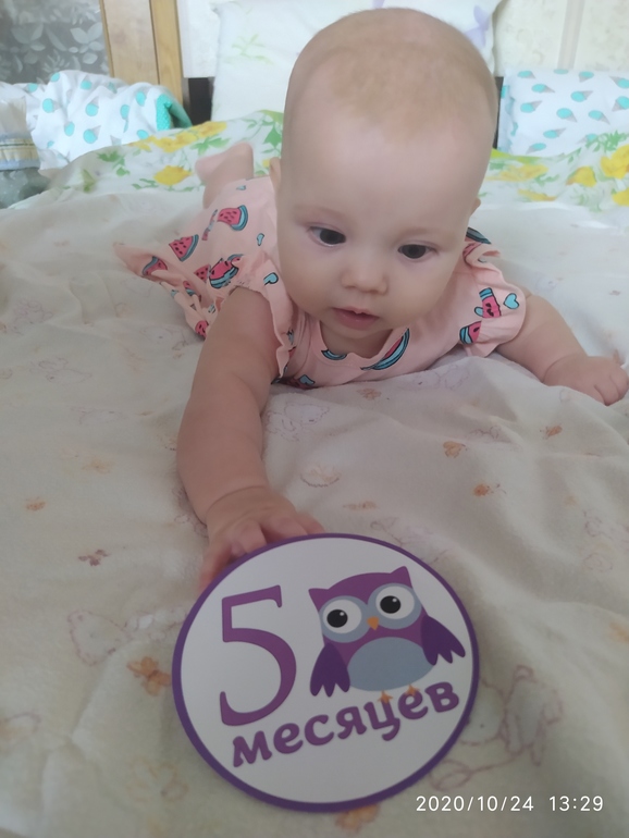 Ввели морковь, цв.капусту, броколи, тыкву, картошку))) Едок из нее тот еще. Кушает как птичка) Четверенек нет, не ползает, не сидит)) надежды на этот месяц)))