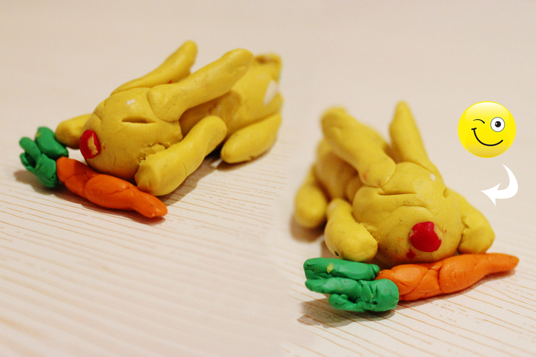 о зайце кстати) смотрим на всех зайцев и понимаем, что неординарных в группе то по пальцам можно пересчитать :) спрашиваю почему желтый? ответили, что он не желтый, а солнечный мам :)