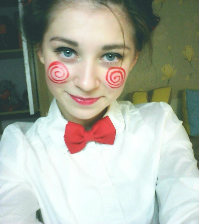 Дочь ходила в школу на Хэллоуин в российской школьной версии, посмотрела фотки ВК у нее и поинтересовавшись в каком месте тут вампир, Кать?! получила весомый ответ, что это, мама, чувак из пилы, --- странно как этот чувак похож на клоуна - подумала я, но ей то виднее че) для меня это красивый клоун женского пола :)