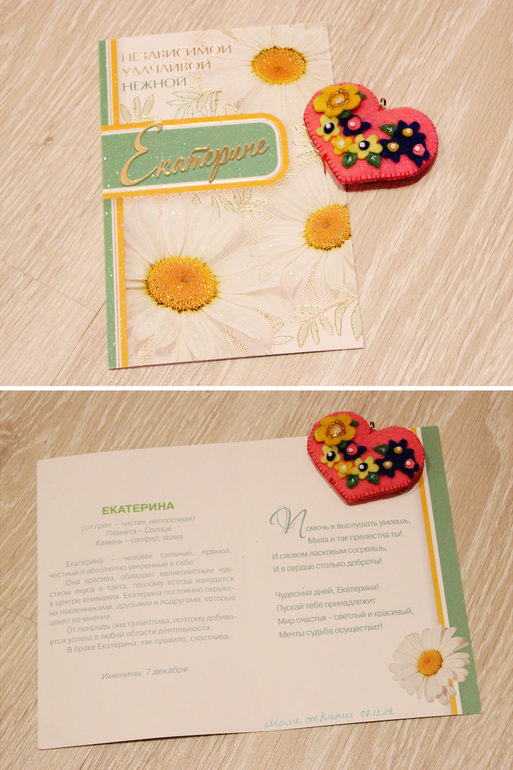 Катюшман сшила фетровое сердеШко с бисером расшитое, придарила мой любимый риттер спорт