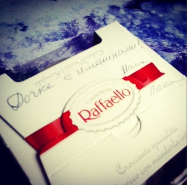 Мама удивили...принесла 8го к обеда мне любимые рафаэлки, прихожу на столе подписанные конфетки :) Мамина забота бесценна дааааа!