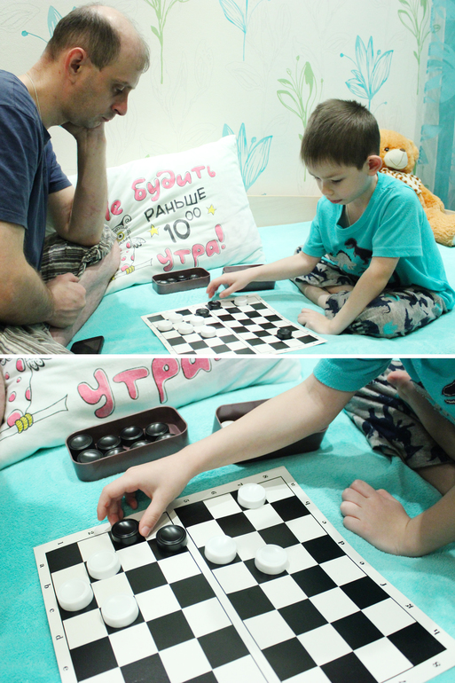 Тимоха увлекся шашками, манает папу каждый день, замучил уже и деда и бабулю, и меня, всехххх)