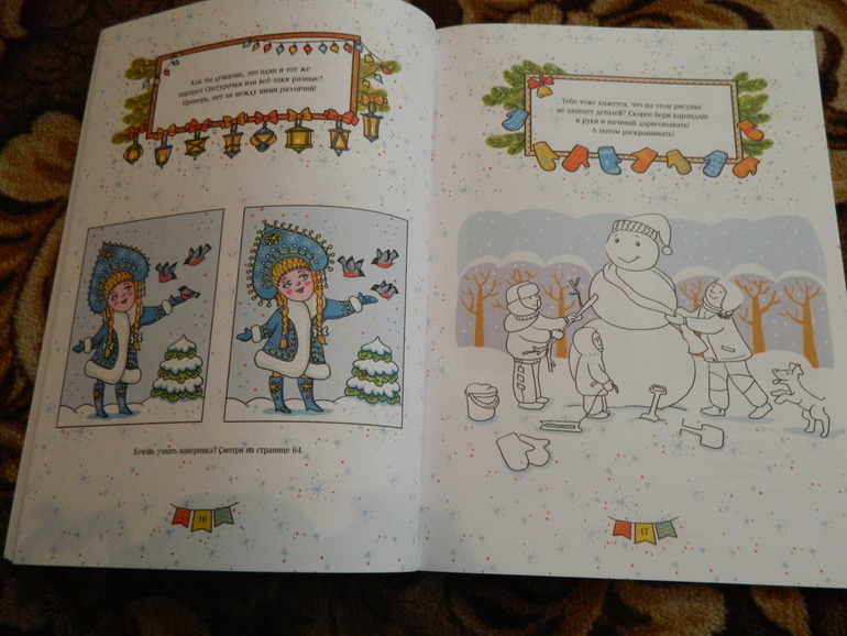 "Новогодняя сказка". Раскраска, где нужно найти детали и их раскрасить.